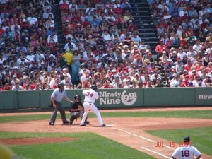 I know, I know…I’m a Yankees fan, right? So what the hell was I doing going to a Bosox game? Well it’s quite simple, actually! I wanted to check out Fenway Park. It’s a historic venue that obviously, quite a number of amazing Yankees historic moments have happened in. From brawls between the two teams: Munson/Fisk in ’73 to Pedro/Zimmer in 2004 to amazing victories like Bucky Dent’s 7th inning 3-run homer in the tie breaker game in 1978 to give the Yankees a lead they wouldn’t give up, and who can forget Mike Mussina’s 1-hitter that was a single strike away from a perfect game in 2001. A lot of great baseball has happened in this park, so being a baseball fan…I had to go!