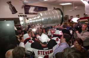 As had become the tradition in New Jersey, the team celebrated their Stanley Cup Championships with a party in the parking lot. The first one in 1995, I had attended with my cousin, and while we weren’t anywhere near the first ones to arrive, I did however, purchase a Championship hat at that parking lot party that I wore the shit out of until it was literally falling apart. For the 2003 party though, my friends & I were at the Meadowlands nice and early and when they opened up the parking lot, we all ran to get right in front and center of the stage. We’re even on the Devils’ Championship video from that year, during the credits! As if that wasn’t a cool day already, on our way back to our car afterwards, we got to meet Stan Fischler as he was getting in his car. Had a little chat with him & thanked him for his work. Unfortunately in 2003, every cell phone didn’t have a camera in it or else we’d have asked for a picture with him!