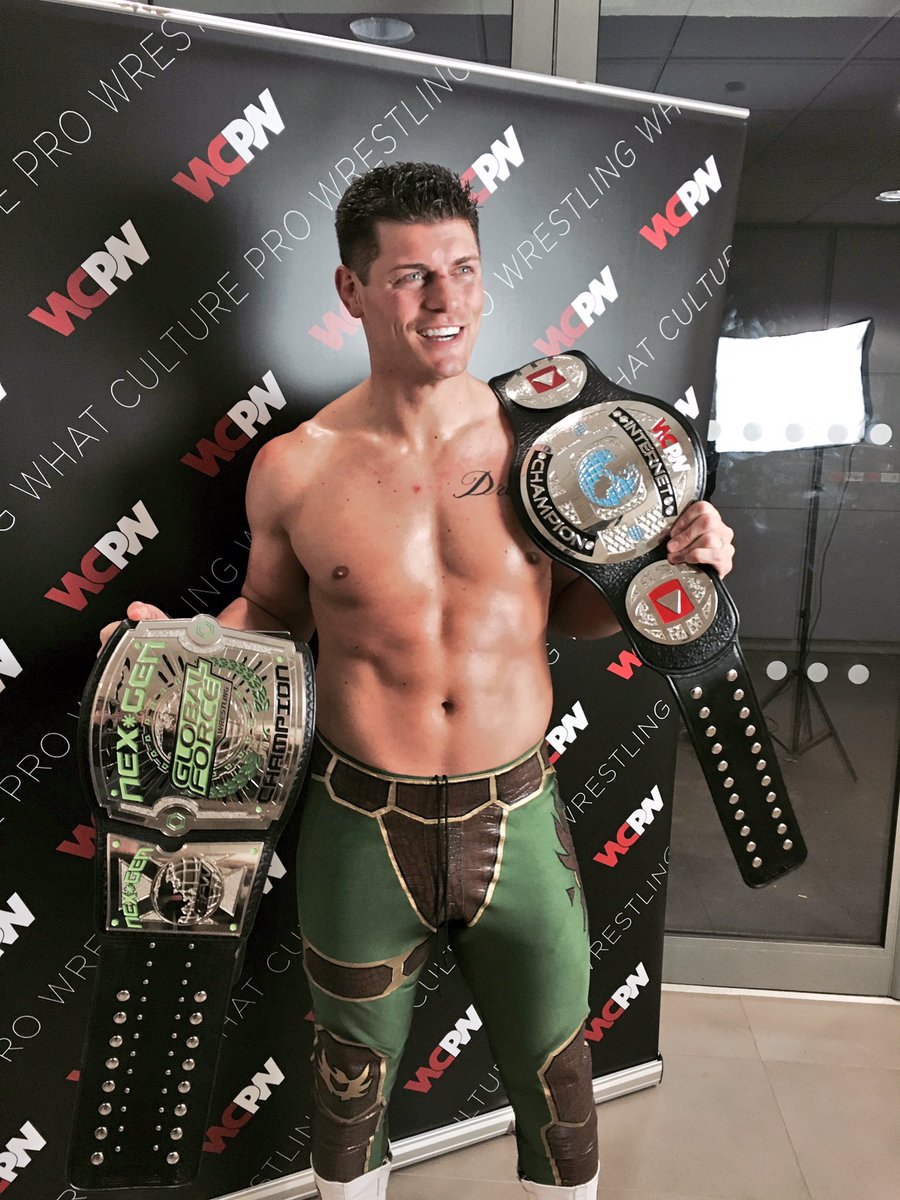 But the real story here is FAR larger than just what we saw last night. The big story here is really Cody Rhodes’ ascension to the top. I mean here’s a guy who started out very green in WWE, first tagging with Hardcore Holly, became one of Randy Orton’s minions as part of Legacy, then became “Dashing” Cody Rhodes with his ridiculous mustache & constant looking at himself in the mirror, which naturally was followed with an injury to his face that forced him to wear a protective face mask & force members of the live audience to put bags over their heads as his own ushers handed out paper bags. From there, he started a tag team with his half brother, Dustin, then known as Goldust and eventually morphed his character to being an offshoot of Goldust, known as Stardust. When his career became stagnant and he saw the writing on the wall that all Vince saw in him was this midcard talent, he decided to bet on himself and asked for his release from WWE. After being granted his release, a list appeared on his twitter account, where he listed a number of independent talents he’d like to take on now that he was free from WWE.