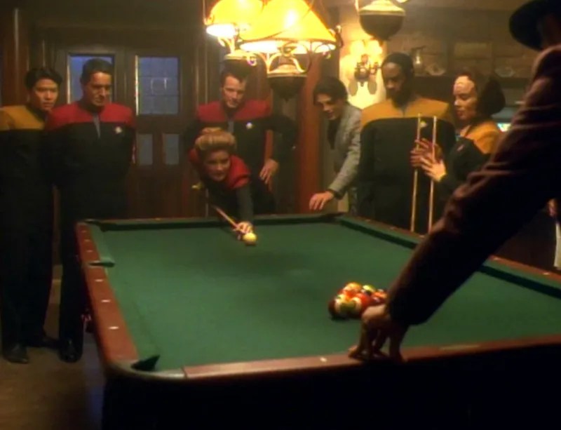 Tom’s also an excellent holographic novel creator. During his time on Voyager, Tom created a number of environments in the holodeck, most notably: Sandrine’s, the Captain Proton series and Fair Haven. Sandrine’s was based off a real life wharf-side bar that Tom had frequented in Marseille, France. The Captain Proton series was a classic 1930s era black and white sci-fi series starring Captain Proton (Tom) and his sidekick, Buster Kincaid (Harry) with their main antagonist as Doctor Chaotica, who was always plotting the destruction of Earth. While Fair Haven was a small seaside town based in 19th century Ireland. Almost every member of Voyager’s crew partook in the environment, each taking on a persona from that era.