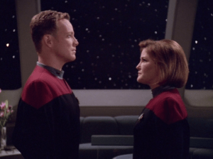 As such, he does settle down and marries Voyager’s Chief Engineer, Lieutenant B’Elanna Torres, the half Human/half Klingon former member of the Maquis. By the end of their trip back to the Alpha Quadrant, Tom becomes a father in the final episode of the series. However, that’s just his love life. Let’s look at a few other areas in which Tom grows during the 7-year arc of the show.