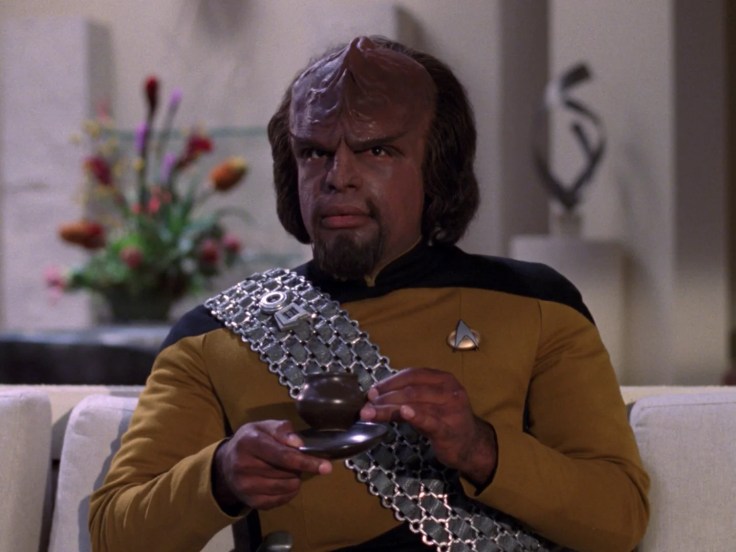 It should also be noted that during his time on the Enterprise during The Next Generation series, a number of rather odd quirks are written into Worf’s character. What I believe to be the weirdest is his love of prune juice, calling it a “Warrior’s drink”, when we all know that true Klingon warriors drink only blood wine, which HAS to be more potent than your everyday prune juice. While we’re on the brutish Klingon warrior liking mild drinks, he also makes the comment while down on Rana IV, as he sits on a couch inside an elderly couple’s house, while drinking a cup of tea he has been offered, he responds, “Good tea, nice house.” Can you honestly see ANY other Klingon (Martok, Gowron, Kurn) saying that exact line?