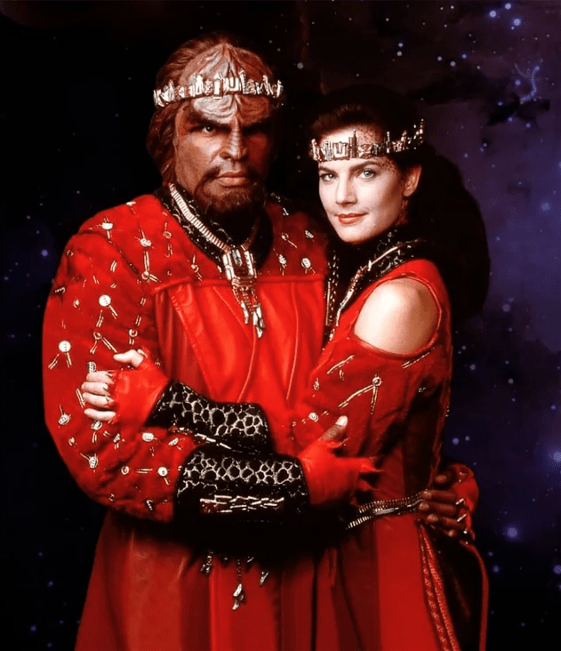 In terms of prospective mates, Worf’s choices are few. Of the Klingon women he knows, the Duras sisters of Lursa & B’Etor are certainly not options as it was their brother, Duras who murdered K’Ehleyr and their father’s dishonor which was applied to Worf when he accepted his discommendation. And it’s because of his discommendation and his status as a member of Starfleet that largely makes him unattractive to just about every Klingon woman.